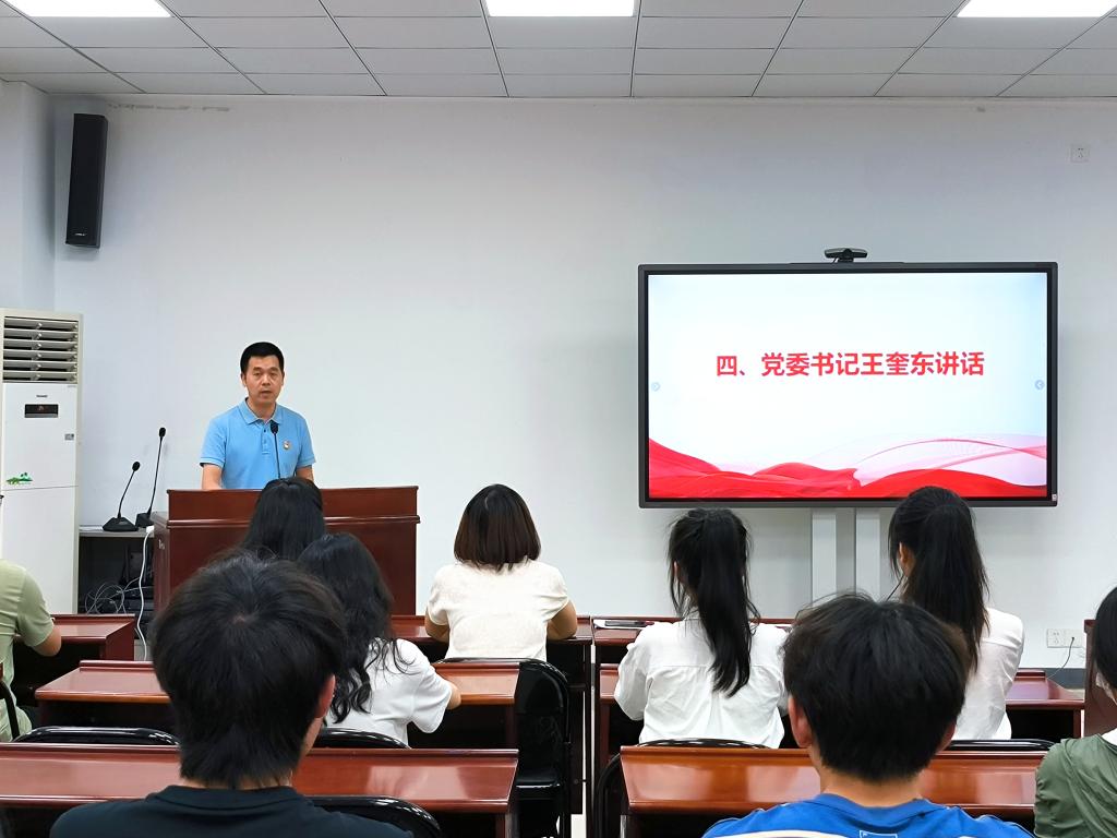 王奎东表示成为一名中国共产党员是政治生涯的新起点,也是今后学习生活的新开始,更是我们党组织的新力量。他对新党员提出四点希望:一要恪守入党 誓言,入党 誓言字数虽少但内涵丰富,需要我们用一生去细心体会,用一生去为之奋斗,用一生去坚守实践;二要加强理论学习,要树立良好的学风,认真学习政治理论知识和党的方针政策,学习专业知识和专业技能,努力使自己成为对党和人民有用的人;三要强化党员意识,时刻牢记党员身份,以党员标准严格要求自己,要坚定“四个自信”,增强“四个意识”,切实做到“两个维护”;四要发挥模范作用,在学习上钻研知识,提高专业技能,在工作中脚踏实地,树立担当精神,在生活中关心同学,增强服务意识,发挥好党员的先锋模范作用。他勉励在场的员工要艰苦奋斗、严于律己、勇于创新、开拓进取,以良好的精神状态,充足的干劲,为实现中华民族伟大复兴的中国梦而不懈奋斗。