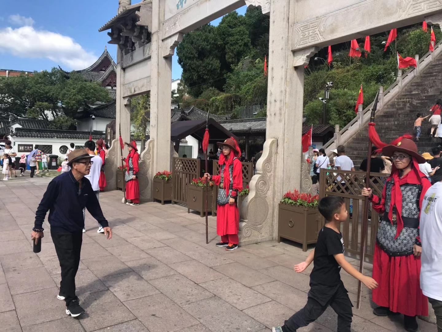 此次爱心志愿活动除了关爱老年之行,也有一场特殊的“景区之行”。部分志愿者在10月2日至6日来到景区装扮成了戚家军站岗,招揽游客,向国庆期间来临海旅游的广大游客们介绍了戚继光以及戚家军的历史,弘扬了戚继光抗倭的光辉历史,传承并宣传了台州地方文化。
