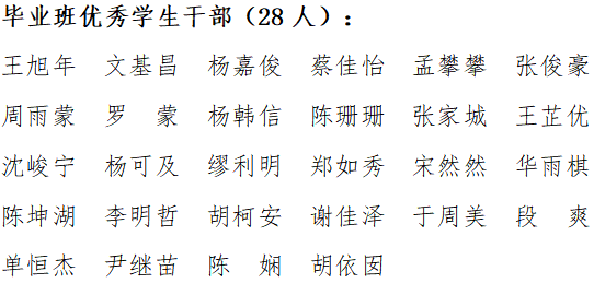 根据《关于做好2025届毕业班优秀员工干部评选工作的通知》,经个人报名、各班推荐、学工办审核、公司党政联席会议通过,推荐王旭年等28位同学为毕业班优秀员工干部人选,现予以公示。