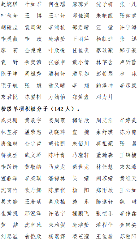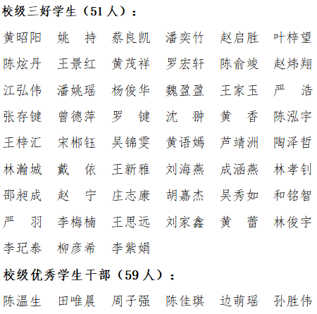 根据《太阳集团tcy8722本科生评优奖励办法》,经个人报名、各班推荐、学工办审核、公司党政联席会议研究决定,推荐黄昭阳等51位同学为校级三好员工人选,陈温生等59位同学为校级优秀员工干部人选,成灵珊等142位同学为校级单项积极分子人选,现予以公示。