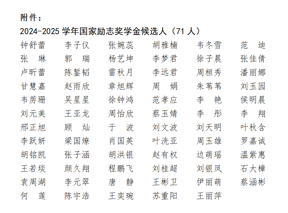 附件:2024-2025学年国家励志奖学金候选人初审公示名单
