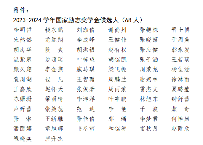 附件:2023-2024学年国家励志奖学金候选人初审公示名单