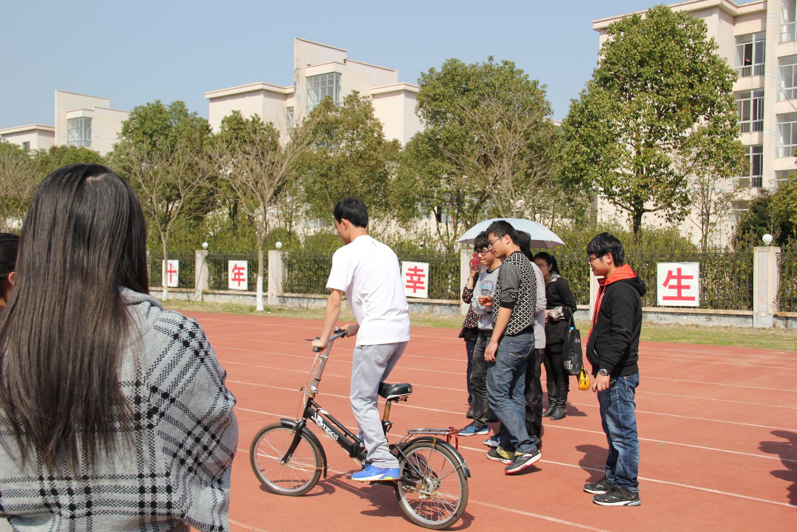 本次趣味运动赛将娱乐和竞技相结合,着重同学们的参与和合作。垫排球,阳光伙伴,单车慢骑,投篮。尤其是阳光伙伴,不仅是团队合作精神的良好体现,而且兼顾了趣味性和互动性,因此受到了同学们的热烈欢迎,极具挑战性。而单车慢骑也充分体现了难度,极其考验参赛者的灵活度和细心度。