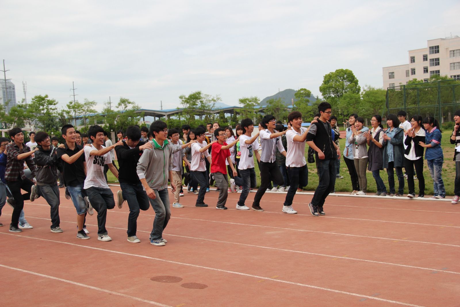 比赛还没开始,各班级的运动员已经排好了队伍聚集在操场上,他们心中充满期待。此次的运动会共有4项比赛:跳绳,背球接力,拔河,单腿火车跑。最激动人心的莫过于拔河了,赛场上人声鼎沸。参赛者全力拼搏,拉拉队声嘶力竭,旁观者欢呼喝彩。10信管永不言弃,戏剧性地扭转局势,将全场比赛推向了小高潮。11数学更是抢占焦点,面对“连续性”比赛的劣势,全班级上下一心,转劣为优,凭借恢弘的气势,一鼓作气,连胜夺冠。青春的气息在每项比赛中都表现的淋漓尽致,每位运动员都本着为班争光,赛出自己独特的风格和成绩。