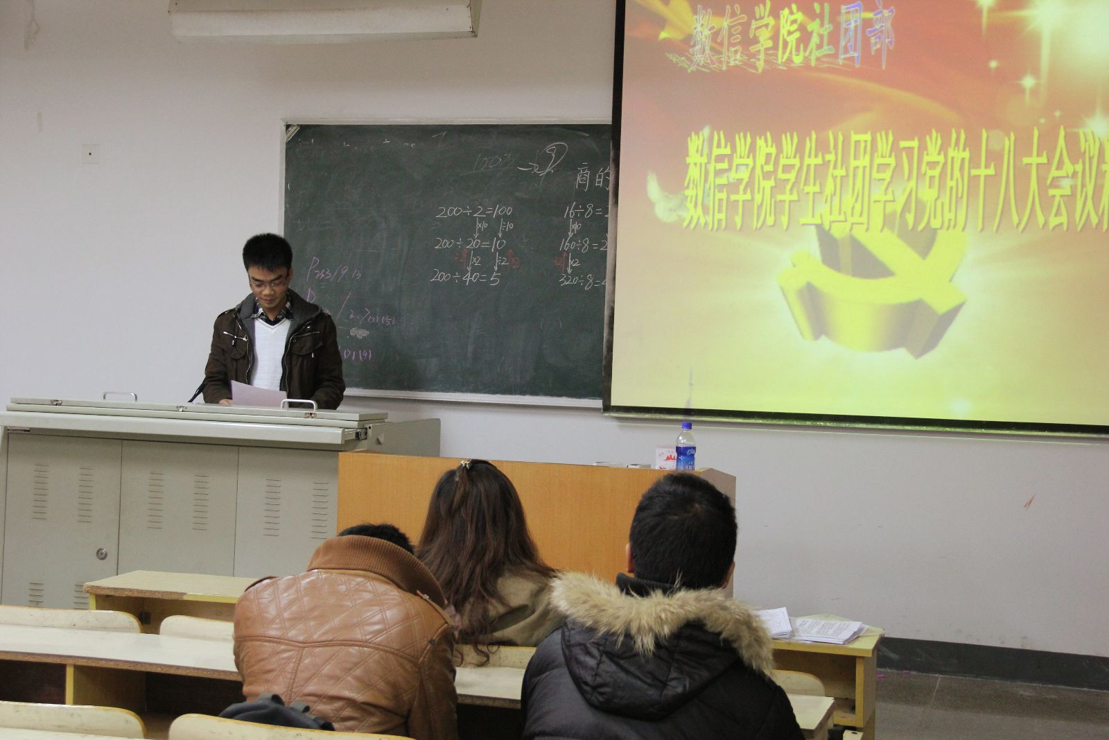 12月27日下午,数信社团部在2103教室召开了五社团深入学习十八大精神会议.各社团理事会成员出席了此次会议。