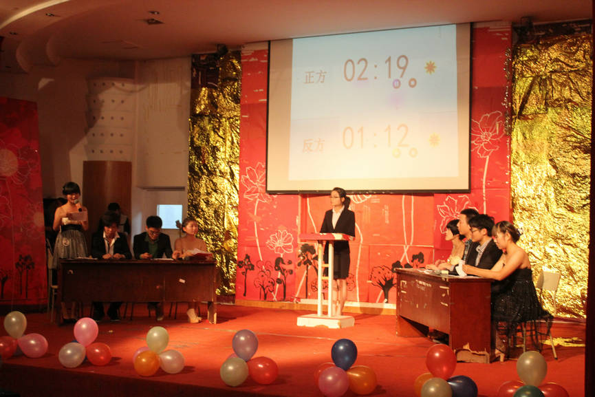 大赛在助唱嘉宾悠扬美妙的歌声中拉开帷幕,随后八位参赛选手激情昂扬的朗诵让观众情绪高涨,两人一组的魅力主持更是博得阵阵欢呼,场内气氛十分热烈。在辩论赛中,选手们唇枪舌战,你来我往,将比赛推向了高潮。经过激烈的角逐,最后,由13计应的谭熠夺得比赛的总冠军。