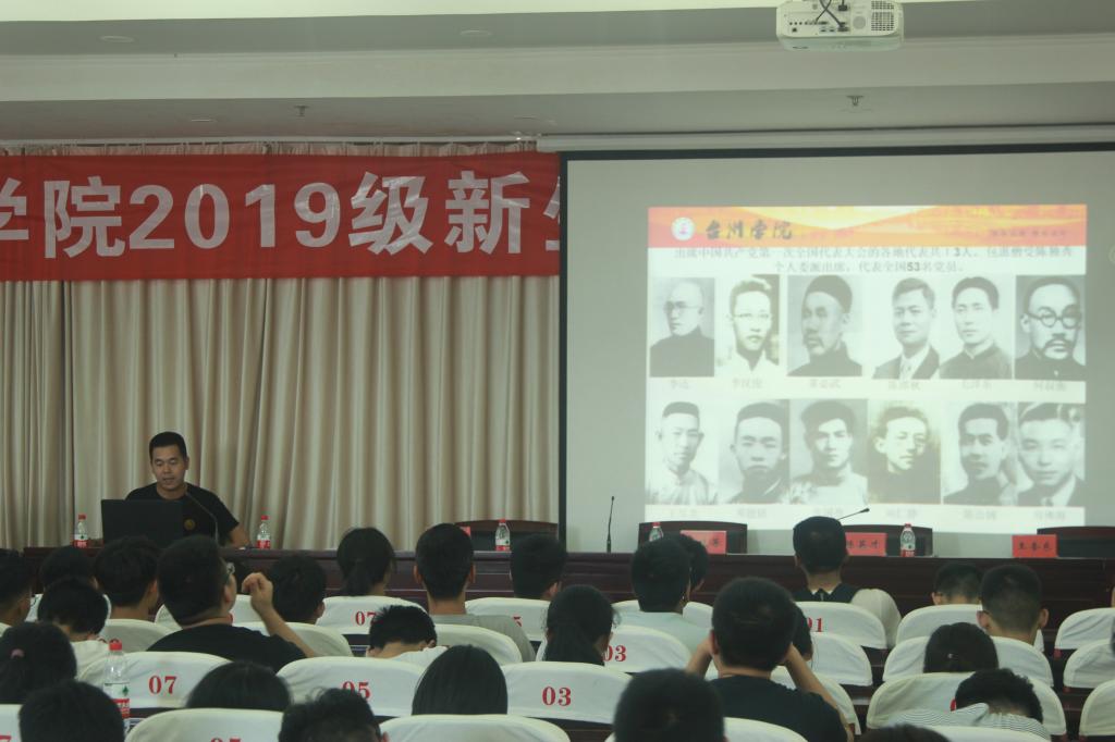 9月10日,太阳集团tcy8722党总支书记王奎东在临海、椒江两校区分2个场次为公司全体2019级新生讲授了入学第一课《中国共产党简史》。