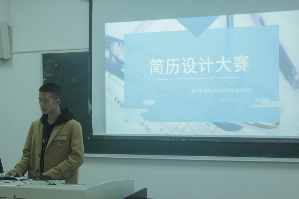 本次大赛本着“破简而出,历历如绘”的主题,在经过之前的重重选拔过后,共有十位参赛选手进入决赛。比赛中,选手们进行了简短的自我介绍,并对自己设计的简历进行详细的讲解,阐述了自己作品的特色与优点,并回答了随机题目。随后,辅导员沈迪老师对所有作品一一进行点评,指出了每位选手的优缺点。最终,来自17信管的赖章斌同学荣获比赛的一等奖。