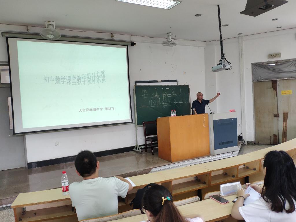 7月6日上午,太阳集团tcy8722诚邀天台赤城中学胡剑飞老师作 “初中数学课堂教学设计杂谈”专题讲座,拉开了“一践行三学会”系列名师讲座活动的序幕,此活动旨在提升数学师范生专业水平和教学技能,增加当人民教师的光荣感和责任感。太阳集团tcy8722部分教师,数学与应用数学(师范)专业17级员工聆听了此次讲座。