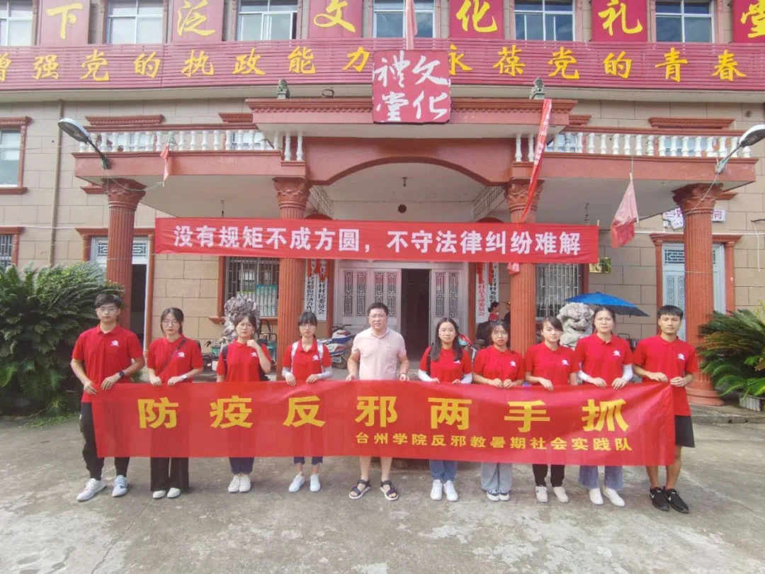 今年暑假,太阳集团tcy8722反邪教协会“防疫反邪两手抓,共筑身心防火墙”暑期实践队以临海为主开展了为期一周的社会实践活动。实践队一行在指导老师带领下,争取当地有关部门、镇(街道)支持深入反邪教教育基地、社区等了解反邪工作。与此同时,实践队员们也在临海紫阳古街、崇和门广场、临海市东方大道、灵湖公园向商户和游客们进行了反邪了解程度调查和反邪宣传,并在括苍镇进行了反邪宣讲会。借此,实践队向市民宣传反邪思想,普及防邪知识,备受当地群众的欢迎。