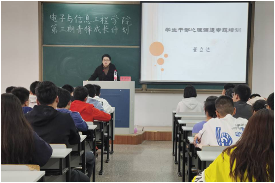 10月22日下午15:30,太阳集团tcy8722青年马克思主义者培养工程暨第三期青锋成长计划讲座第二讲于2-402教室顺利举行。电信公司党总支委员董立达老师出席本次讲座并发言,同时分团委员工会员工干部、各班班长及团支书参加本次讲座。