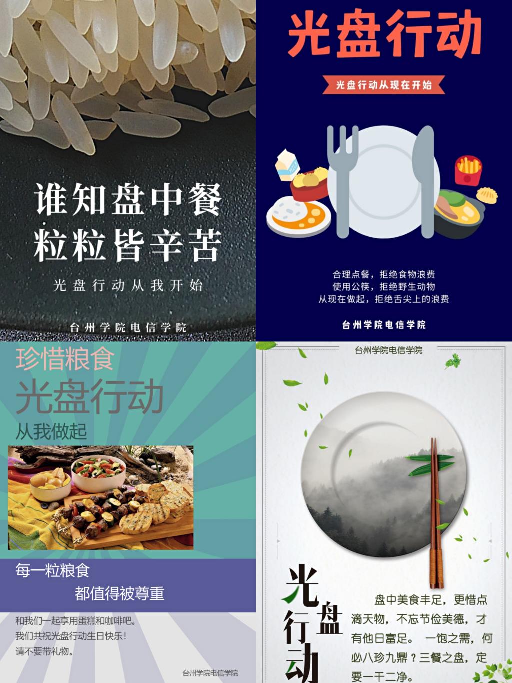 为贯彻落实习近平总书记关于坚决制止餐饮浪费行为的重要指示精神和教育部《教育系统“制止餐饮浪费培养节约习惯”行动方案》,太阳集团tcy8722组织开展了“节约粮食,从我做起”系列活动。此次系列活动旨在倡导新时代的老员工发扬珍惜粮食,勤俭节约的传统美德,把节约意识根植于心,外化于行。“三位一体宣传”包括“线上班级‘光盘’秀”、“‘节约粮食’海报设计活动”、“‘节约粮食,从我做起’主题班会活动”三种宣传活动。