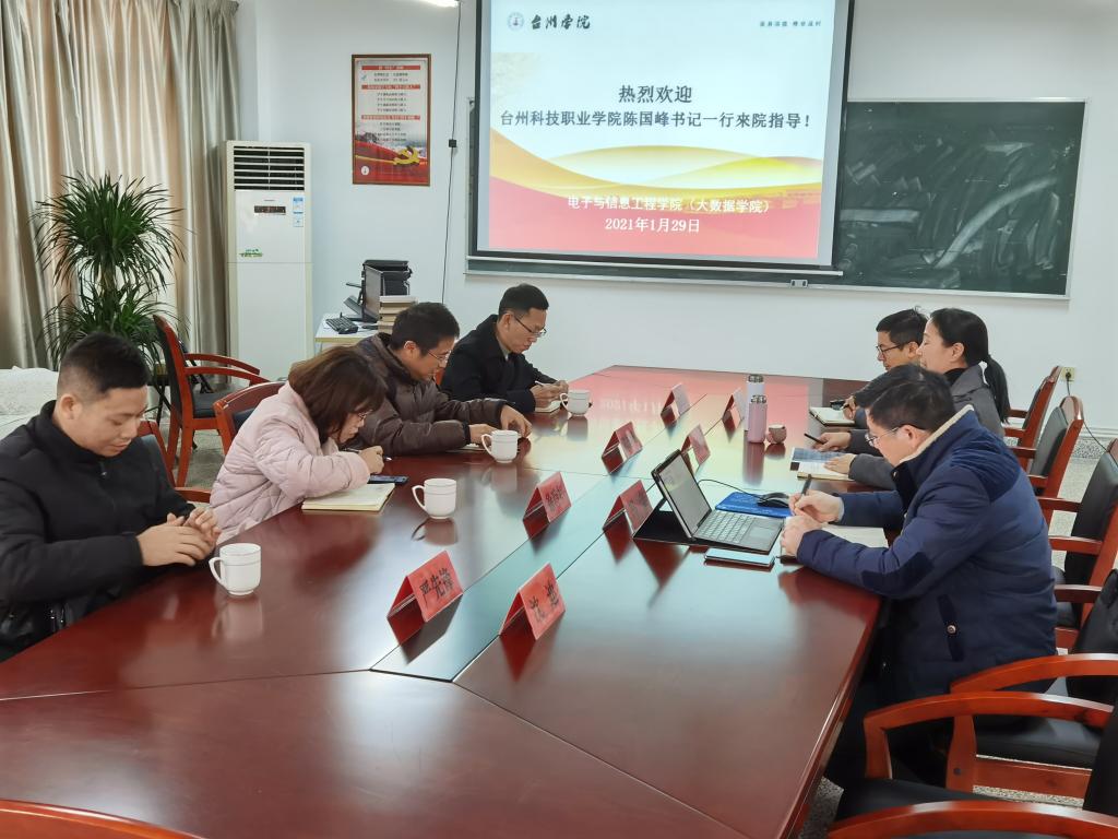 1月29日,台州科技职业公司党委委员、纪委书记陈国峰一行4人来公司电子与信息工程公司考察交流。电信公司执行经理苏岐芳、党总支副书记冯荣热情接待考察组;计算机系主任陈盈、相关辅导员参加交流活动。