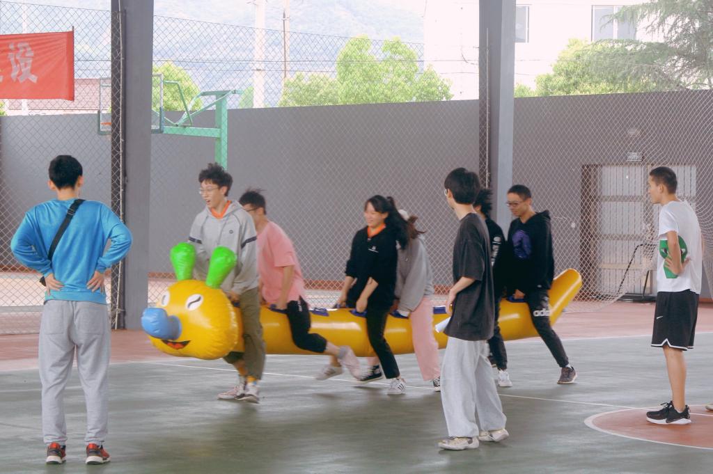 本次趣味运动会共有毛毛虫、蚂蚁上树、跳长绳、两人三足等8项项目。在活动过程中,每一小队优化组合、齐心协力、团结协作,赛出青春风采、博出激扬风貌。在送鸡毛信环节,每一小队在历史情景中追溯红色记忆,感受战火纷飞年代的青春激情;在唱红歌环节中,大家以红歌为依托,点燃红色记忆,赓续革命精神。