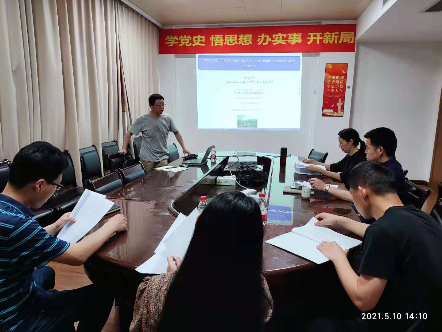 5月11日,应太阳集团tcy8722邀请,浙江师范大学张长江教授、刘华文教授和宁波大学罗文昌教授为老师们分别作题为:“基于红外卫星图像和深度学习的热带气旋分类定强专题讲座”、“ 自适应的稀疏学习方法及其应用”和“ Rescheduling for new orders on a single machine with rejection”的专题讲座。
