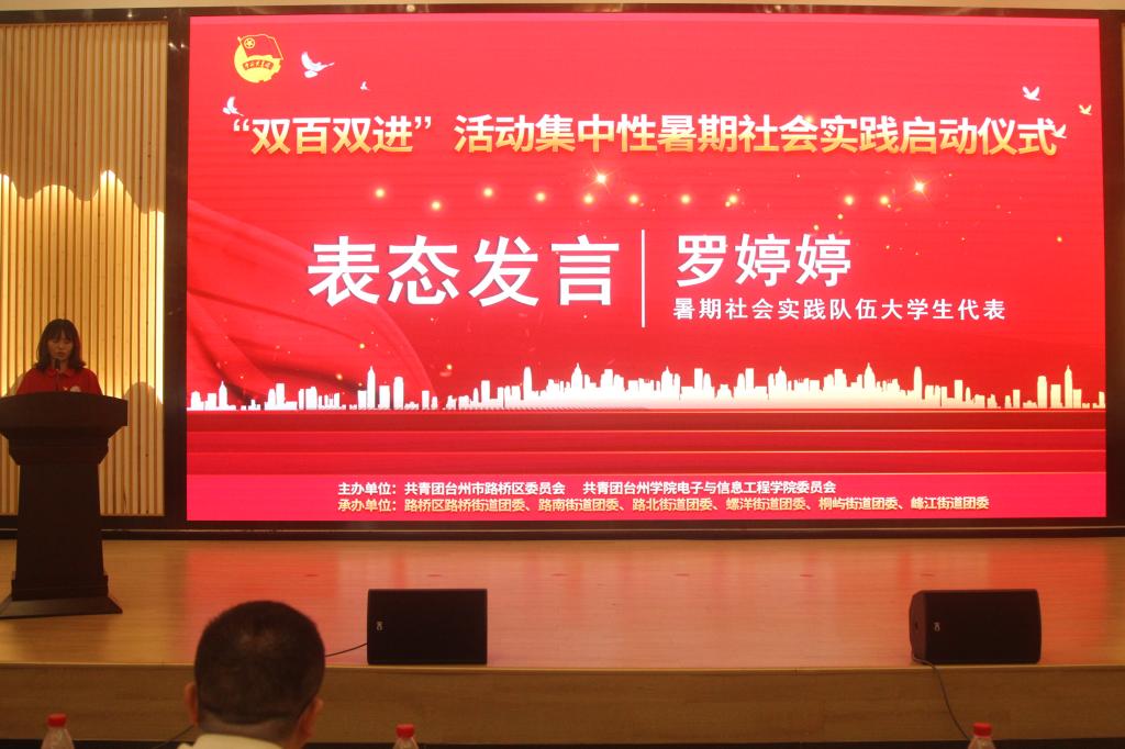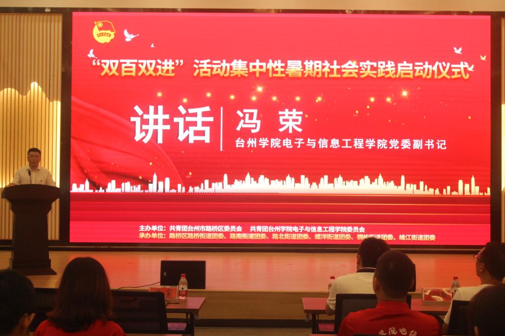 启动仪式上,路桥团区委书记金清良致辞介绍了富有内涵、极具活力的路桥市貌,寄语团员青年在社会实践中践行青春使命、磨砺意志品质、纯正思想灵魂。电信公司党委副书记冯荣强调了本次“双百双进”暑期社会实践活动的意义,期望电信学子在深化老员工理论宣讲、志愿服务、实习见习、留才荐才等方面发挥作用,擦亮“太阳集团tcy8722姓台州”的名片。