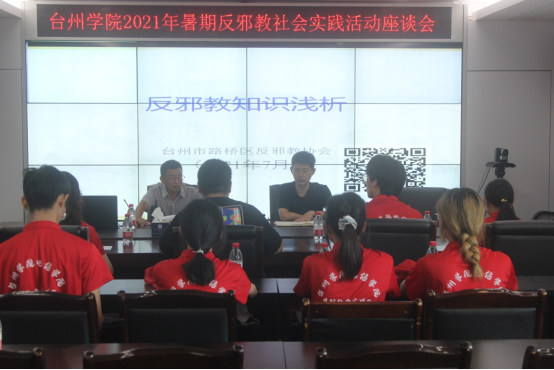 7月5日上午,实践队队员来到路桥区委政法委会议室,拉开2021年暑期反邪教社会实践活动座谈会的帷幕。路桥区委政法委委员汤建斌、区反邪教协会副理事长兼秘书长王祖增、区平安创建中心副主任罗利红、指导老师沈迪以及全体实践队员到会。座谈会上,王祖增秘书长就邪教产生的背景和路桥今年的反邪形势这两点展开,讲解邪教与宗教的区别、邪教组织和各类有害气功的基本特征、传播方式以及巨大危害、如何引导广大群众识别和抵制邪教侵害等知识,结合真实事例,使得讲述更加的生动。在王秘书长的讲述后,汤委员继续带我们深入了解反邪知识,实践队员们也积极提出了一些关于反邪的问题,就此展开了深入交流。反邪实践队来到路桥区的东岳庙、桐屿堂等宗教场所,深入了解反邪工作情况。