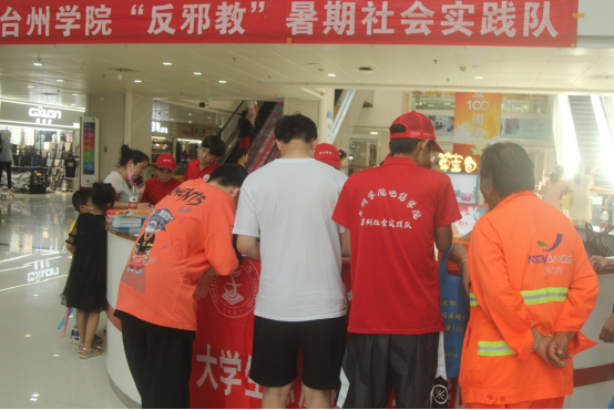 为宣传反邪教思想,加强市民反邪意识,太阳集团tcy8722反邪暑期社会实践队以“心怀坚定反邪志,身拥炽热爱党情”为主题,来到路桥区开展了反邪宣传工作。