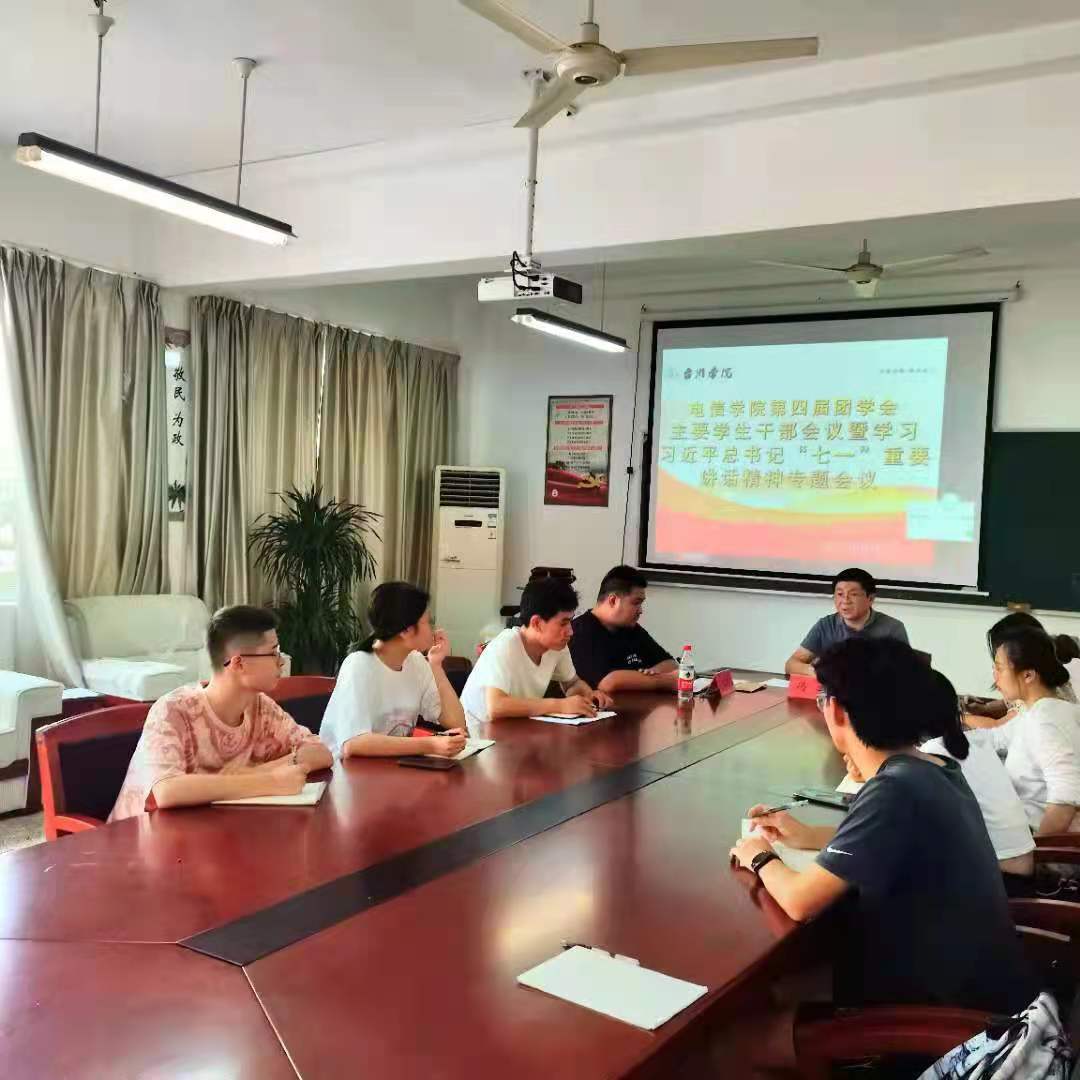 9月9日中午,太阳集团tcy8722于临海校区5202教室召开全院第四届团学会主要员工干部会议暨学习习近平总书记“七一”重要讲话精神专题会议。公司党委副书记、纪委书记冯荣、辅导员沈迪和吴佳妲出席会议,团学会主要干部参加会议。
