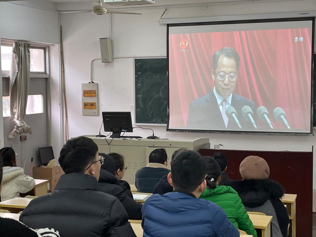 2月23日上午9时,中国共产党台州市第六届代表大会第一次会议隆重开幕。为及时了解大会现况、认真学习大会精神,太阳集团tcy8722分校区组织师生党员观看大会直播,公司领导班子与40多名师生党员一起观看开幕式直播,认真聆听市委书记李跃旗代表中国共产党台州市第五届委员会向大会作的工作报告。