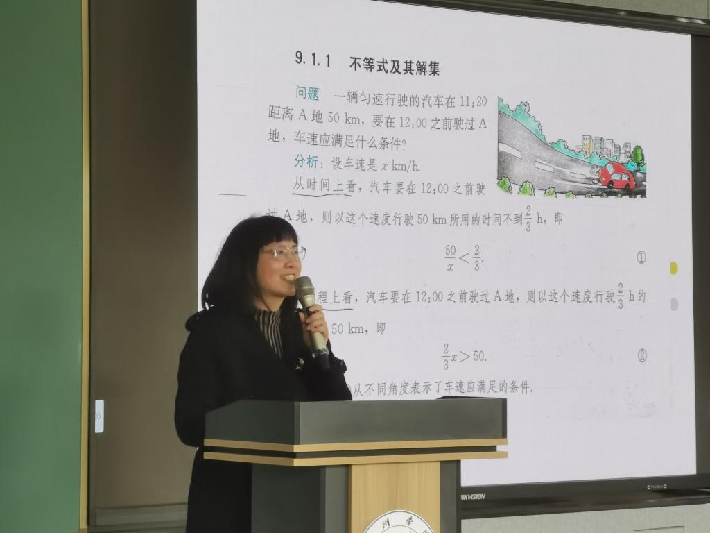在本次讲座中,陈老师首先认真倾听了19级三位同学的现场说课,并观看三位同学的模拟上课视频;然后,陈老师精准地点评我们三位同学的优点与不足之处;最后,陈老师结合自身的研究,指出了章节起始课在整体教学中的地位与重要性,并提出“整体教学、关注生长”的教学新思想,以及如何处理章节起始课的新方法,为全体同学展示了一个教学设计和教学研究的经典范例。