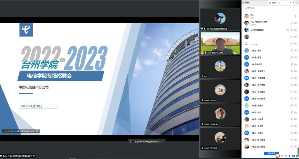 本次线上就业实习双选会共有30多家企业报名,经专业匹配度、岗位需求度筛选,共组织22家用人单位进行线上宣讲,实际提供就业岗位和实习岗位近400个。线上招聘会各用人单位宣讲内容紧凑,专业匹配度高,现场员工反响热烈,毕业班员工根据近期的实习经验,大三员工根据自己的职业规划,均和心仪用人单位进行了有针对性的深入了解和交谈,部分员工通过线上添加用人单位联系人或投递简历。其中,中国电信台州分公司、浙江伟星实业发展股份有限公司、浙江水晶光电科技股份有限公司、浙江正泰中自控制有限公司、浙江卓奥科技股份有限公司、台州市环科环保设备运营维护有限公司等国企、上市公司备受员工关注。