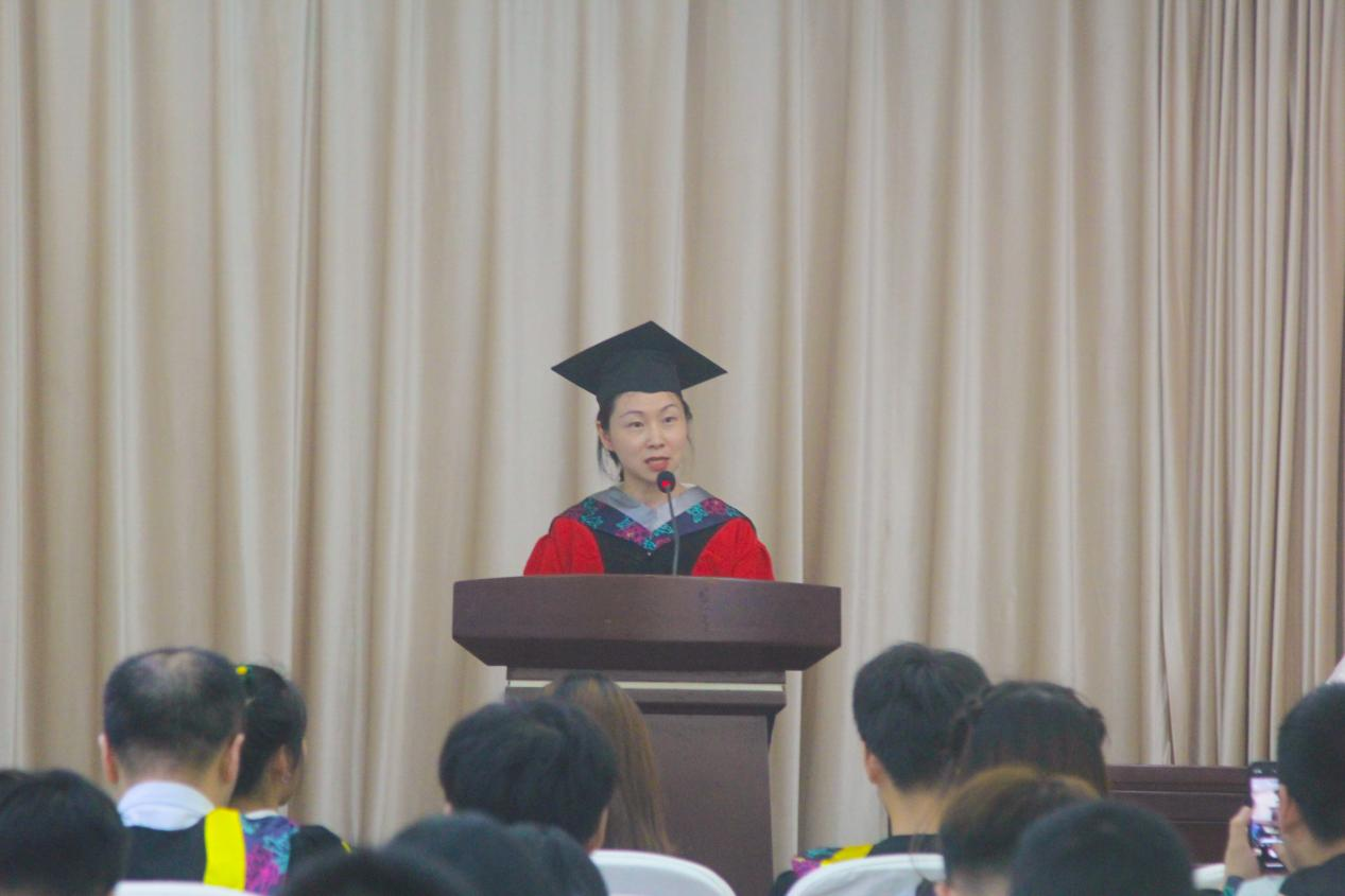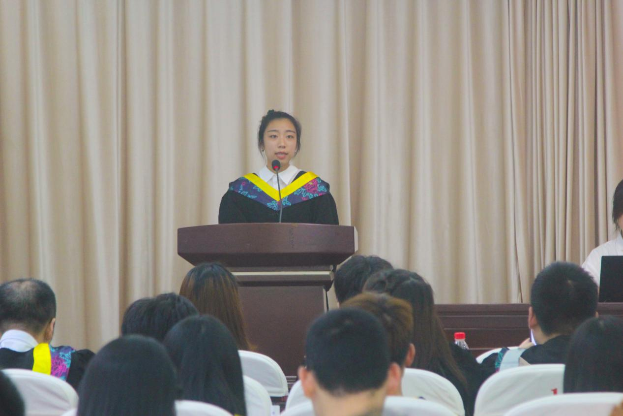 会上,毕业生代表詹璐瑶、教师代表俞优莉先后发言,表达感谢与祝福。