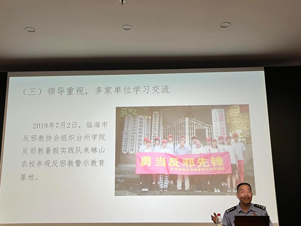 在临海市新时代文明实践中心,临海市委政法委邓其东委员结合具体个案分析就当前临海市反邪的形势、任务做了一场精彩的辅导报告,让广老员工了解了整个社会面各条线在反邪方面所做的工作,进一步明确了今后反邪宣传实践的方向。临海市反邪教协会副理事长周贤正重点就公司反邪暑期社会实践队所关心的临海市反邪工作的成效、反邪阵地化建设、反邪工作面临的新局面等四个方面的问题做了详细的解读,并为在座的听众一一解答了反邪方面存在的疑惑。