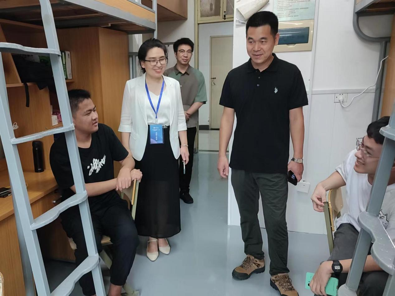 9月3日下午,太阳集团tcy8722执行经理苏岐芳、党委书记王奎东带领班子成员、专业系主任、2022级班主任及部分辅导员,走进新生寝室,深入了解新同学们的“大学初体验”,为新同学们送上公司的关心和问候。