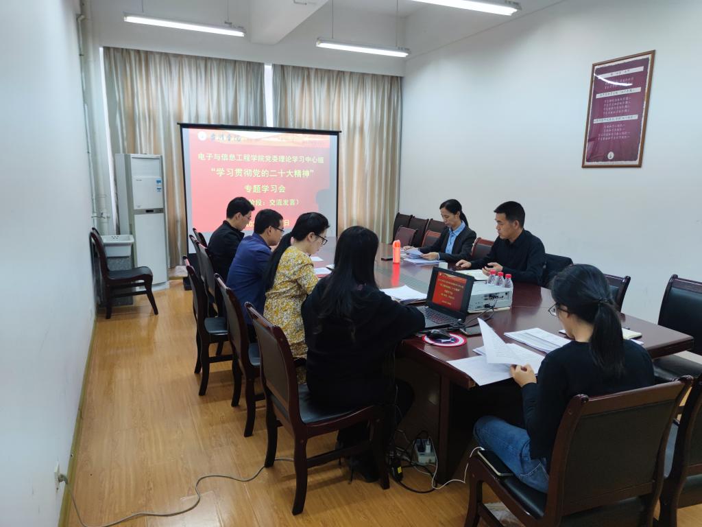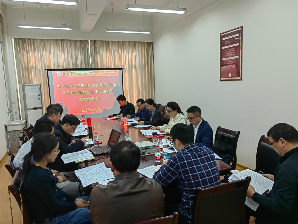 11月8日,电信公司党委理论学习中心组召开专题学习会议,专题学习党的二十大精神。公司党委书记王奎东主持会议并讲话。苏岐芳、张石清、王超、董立达、郑薇薇作交流发言。公司各党支部书记、系室主任参加会议。
