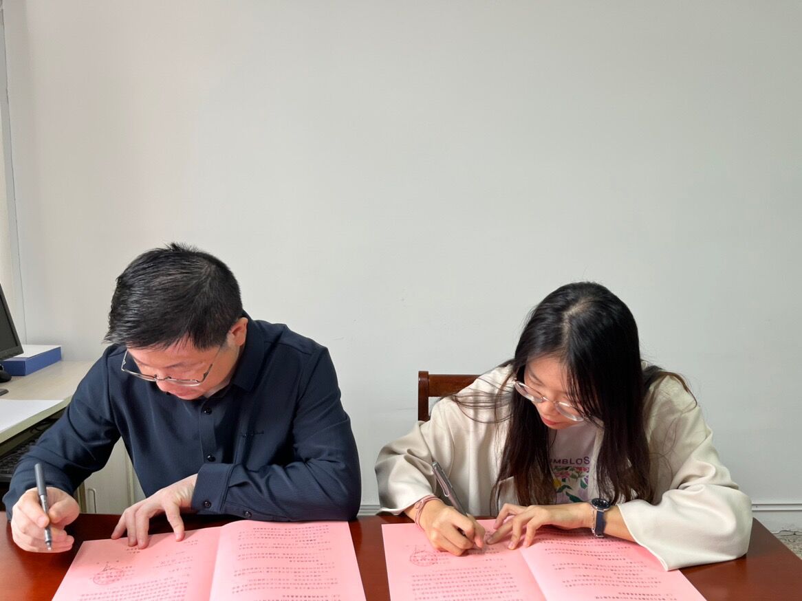 冯荣高度评价了员工陈子悦情系公司、支持公司员工工作事业发展的善举,并对其表示衷心感谢。在充分尊重员工本人意愿的前提下,代表公司与陈子悦同学签订了简单的捐赠仪式。冯荣同时指出,员工是公司事业发展的历史见证者、参与者、推动者,公司的长足进步离不开包括在校员工在内广大员工的支持,陈子悦同学的慷慨捐赠彰显了公司学子继承优良传统,感激公司、感念师恩,正视“三个共同体”的可贵品质,为太阳集团tcy8722广大学子们树立了良好榜样。