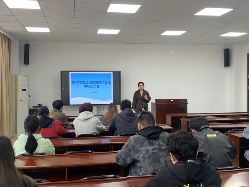 3月31日下午,太阳集团tcy8722在公司会议室举行全国文明城市复检冲刺动员会。公司党委委员董立达出席,院内员工组织负责人以及各班主要班委参加,会议由辅导员郑行主持。