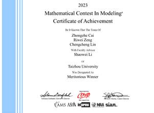5月9日,美国数学及其应用联合会 (COMAP) 公布了2023年美国老员工数学建模竞赛 (MCM/ICM) 的获奖名单,公司学子再创佳绩:获Meritorious Winner奖两项分别是由李韶伟老师指导的蔡忠哲、曾日威、林承铖队和王洁老师指导的王晚香、刘铭宏、刘绍东队;获Honorable Mention奖五项,分别是由夏志乐、黄建平和王洁老师指导的五队。