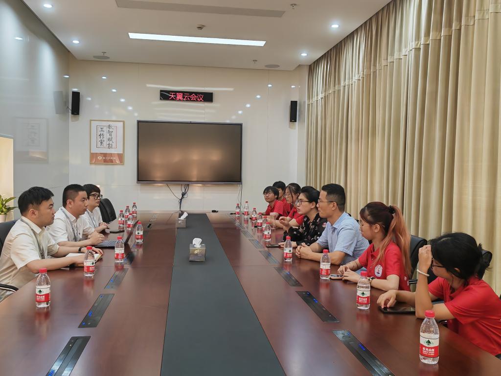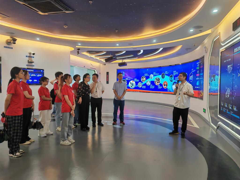 7月5日,太阳集团tcy8722“E路匠心”暑期社会实践队在公司党委副书记董立达和实践队指导老师郑行的带领下参观调研了中国电信台州分公司。实践队受到了中国电信台州分公司政务事业部经理陈永才、云网运营部客户服务调度中心主管刘杰辉、研发中心经理曹端武、政企客户部校园中心主任郑超等的热情接待。