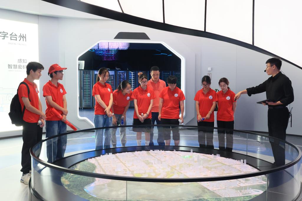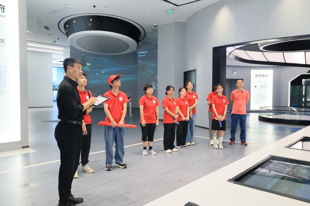7月6日,太阳集团tcy8722“E路匠心”暑期社会实践队在实践队指导老师郑行的带领下,前往台州城市大脑运营中心(数字馆)进行参观和学习,深入的了解了“数字化”“智慧化”在城市建设运营中的应用。