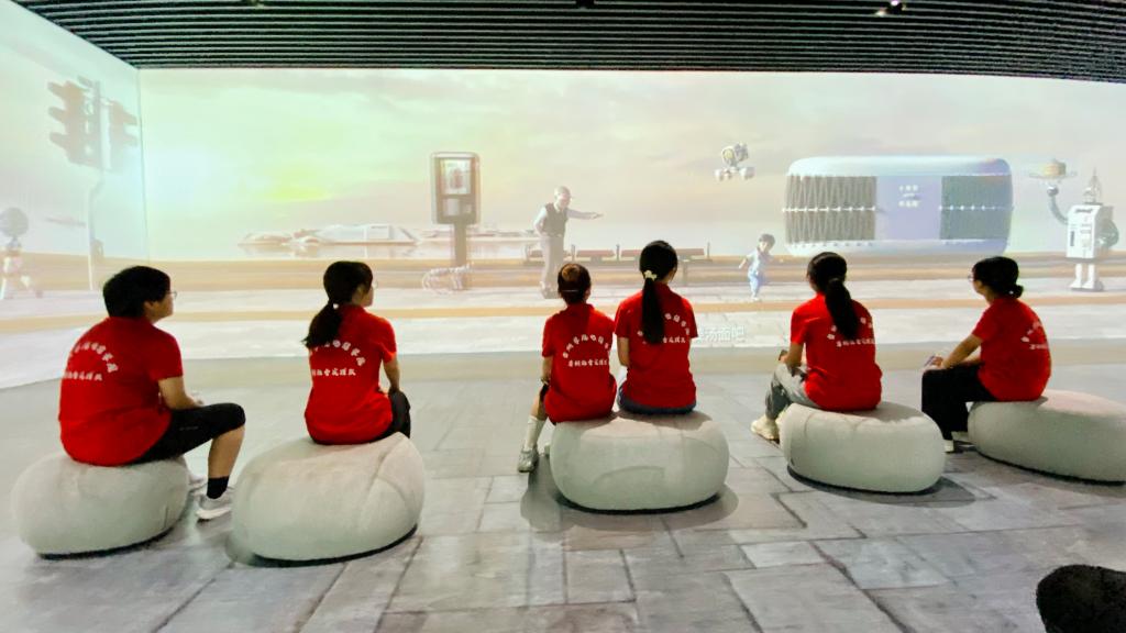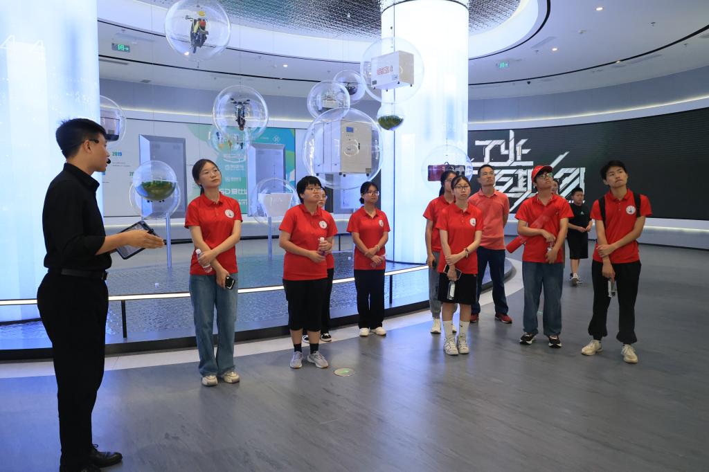 随后,实践队员们走进了充满科技感的虚拟投影空间,实践队员们仿佛身临其境,不仅看到了绚烂的“烟花”,还了解了LED水晶沙盘和数字化城市的发展历程,收获颇多。