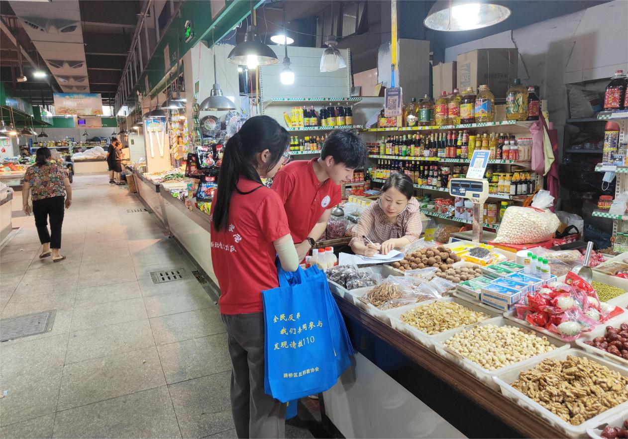 仪式结束后,实践队来到新桥区菜市场,在这里通过发放问卷的形式对居民反邪知识与反邪意识进行统计调查,也为他们进行了反邪教知识疑难解答,帮助当地居民普及了反邪知识,增强了反邪意识。
