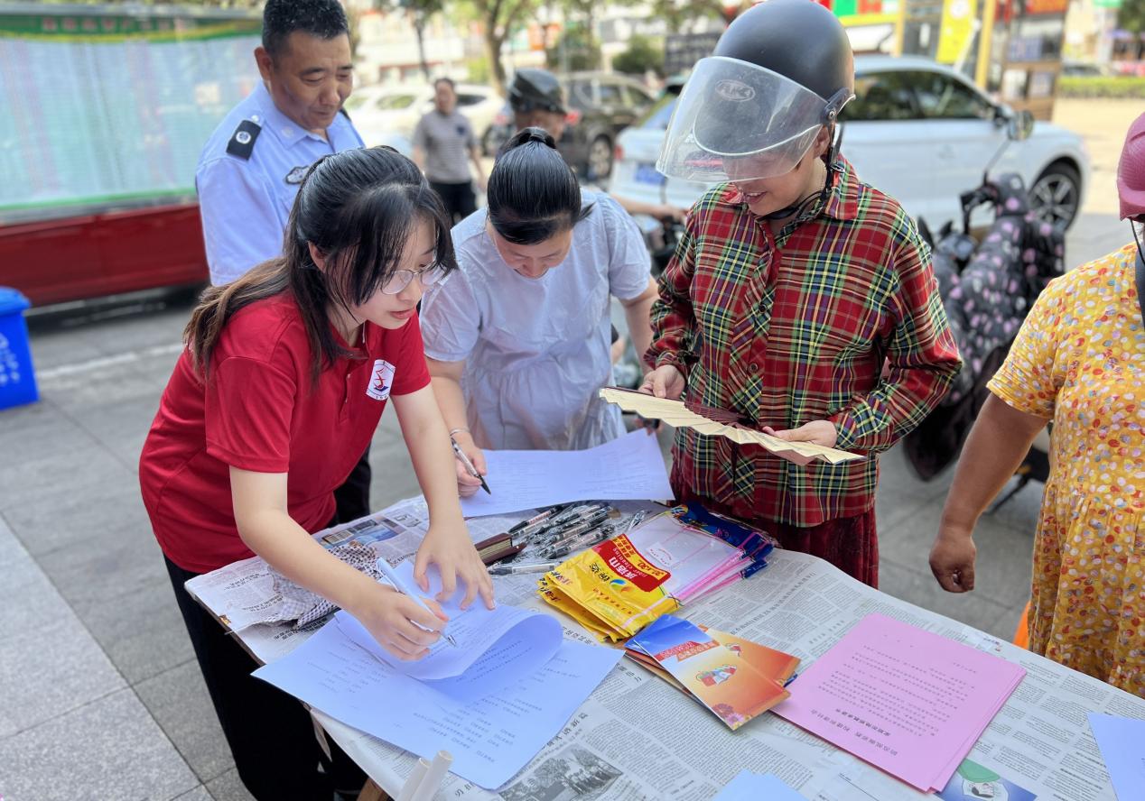 7月4日下午,实践队在台州国际塑料城设立了反邪宣传点,采用“走访+坐点”的形式开展宣传工作。当地群众热情参与,活动反响热烈。