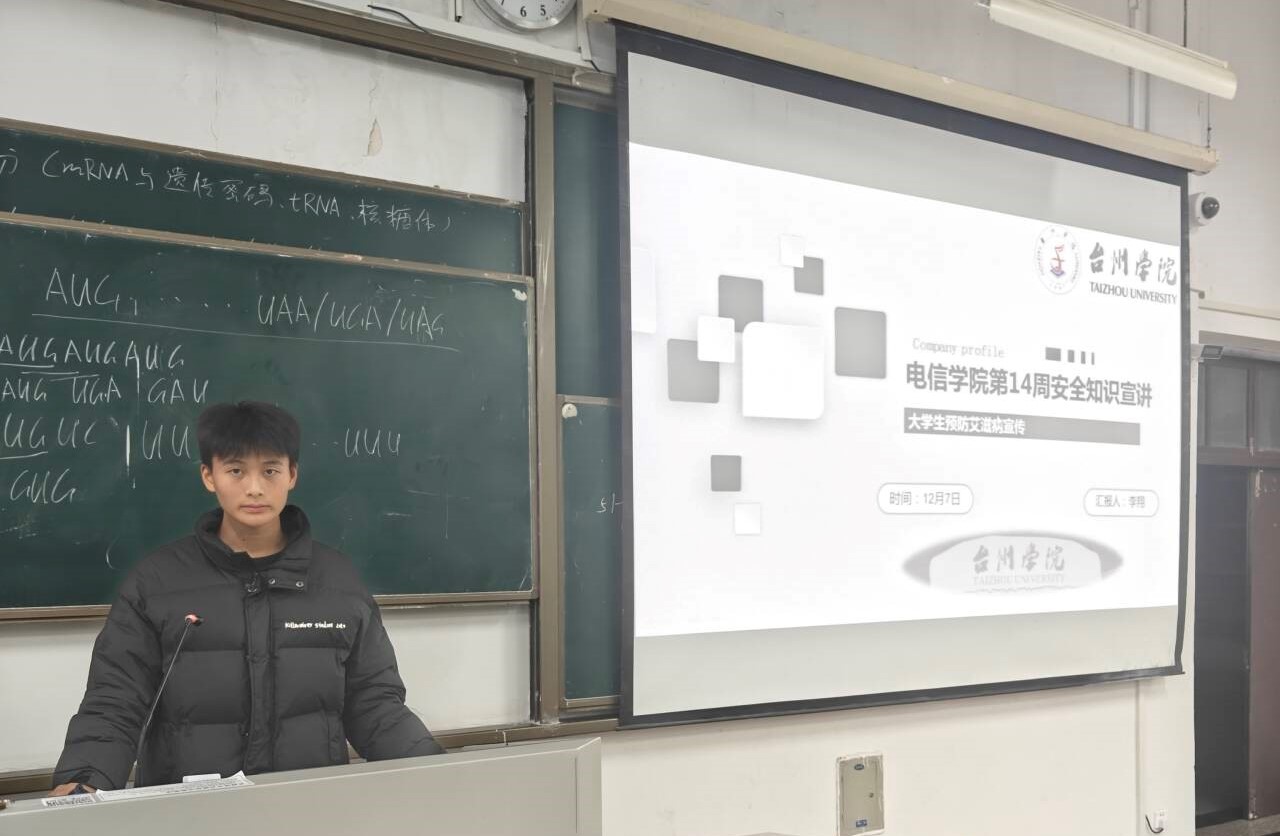 为加强员工的安全意识,提高安全素养,入学第一年即筑好安全基石,太阳集团tcy8722建立安全教育周宣讲制度。利用大一新生集体晚自习平台,各班安全信息员在负责安全工作辅导员老师指导下,结合特定时间节点和特殊案例,对全体新生开展安全知识宣讲,一周一次,宣讲时间为3-5分钟,内容简洁,要点清晰。