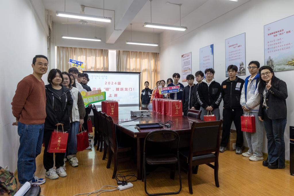 吹灭读书灯,一身都是月。2024届全国硕士研究生考试在即,为缓解考研学子备考压力,助力大家调整心态,鼓舞士气,12月12日,公司举办“e研为定”第二期活动,主题为“暖心护航·一研为定”,党委副书记董立达携辅导员老师,共同为公司145位考研学子送上考研加油大礼包和殷切祝福。