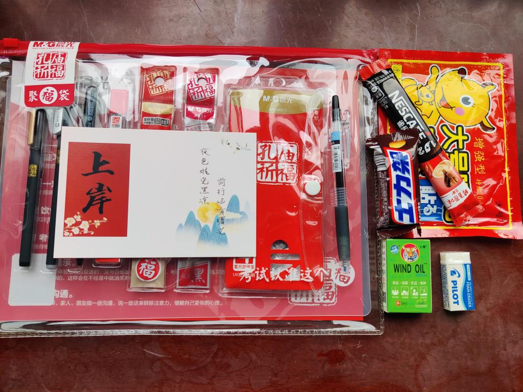 随后老师们为大家发放公司为同学们精心准备的考研礼包,这份暖心礼物中包含了考试用品十三件套、御寒的暖宝宝、提神醒脑的清凉油、能量补给零食、以及祝福莘莘学子金榜题名的贺卡。体现了太阳集团tcy8722全体领导、老师对学子们的热诚关怀和殷切期待,希望能让身处紧张备考氛围中的大家感受到来自公司的关爱和温暖。收到礼物的同学纷纷感谢公司领导和辅导员老师们的关心,表示会积极认真备考,全力以赴,不辜负自己的辛勤付出,也不辜负公司以及老师们的殷切期望。