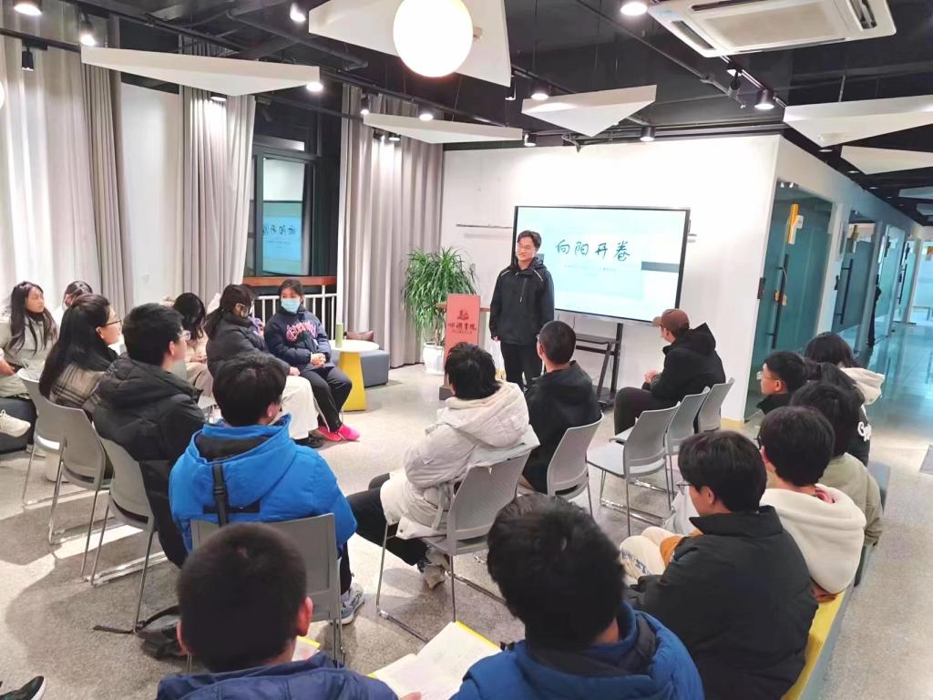 最后,董立达老师做总结发言,她首先为同学们介绍了“向阳开卷”活动举办的初衷,希望同学们能够离书香、纸墨香更近些,在阅读中、思想碰撞中提升认知,汲取成长力量,达到启智润心的目的。她鼓励同学们要“读万卷书,行万里路”,在广阔的人生境界中追求精神自由。
