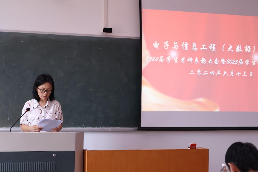 大会第一阶段,公司领导宣读表彰名单,并祝贺词。她希望广老员工以受表彰同学为榜样,踔厉奋发、勇毅前行。随后,与会老师为在2024年考研中取得优异成绩的考研员工代表颁发奖励。