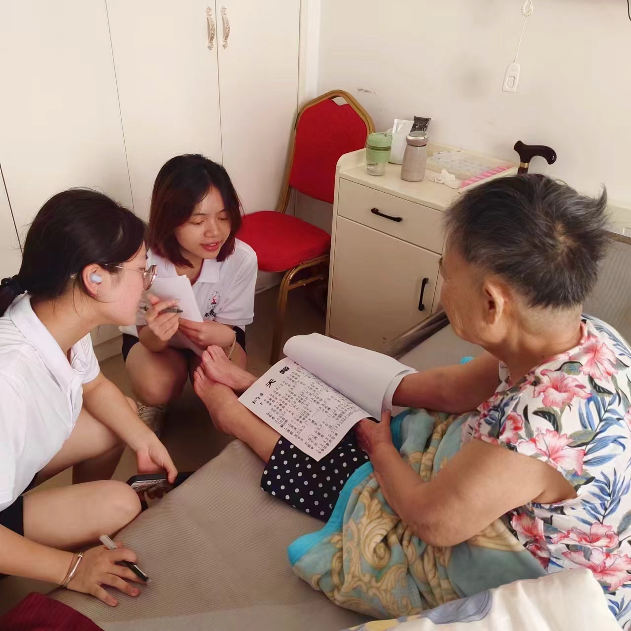 最后,实践队和养老院的工作人员进行了座谈。当前,受老人们的接受能力限制,养老院的数字化、智能化设备不多,养老院的信息化水平有待提高。工作人员认为老年人群体最大的需求是精神需求和陪伴需求,希望未来的数字化、智能化养老能满足老年人们陪伴和关怀的心理需求。