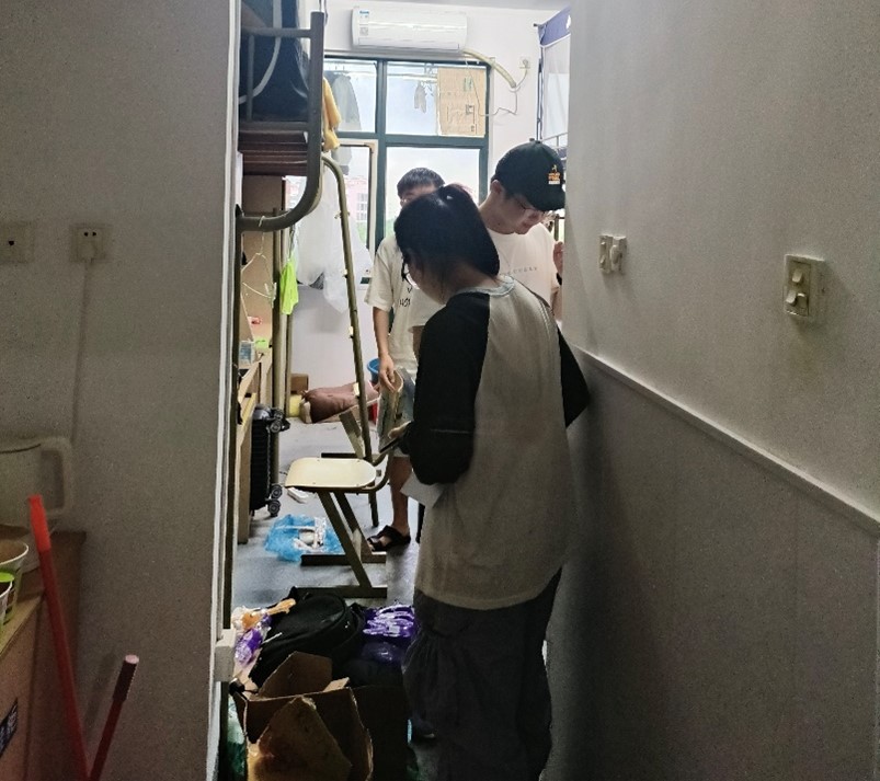 同时,安全检查工作也是此次走访的重点。老师们对留校员工的寝室进行了全面的安全隐患排查,重点检查了宿舍的用电是否规范、是否存在不合规大功率电器、是否存放有易燃易爆的危险品等。在检查过程中,他们不断强调消防安全的重要性,提醒同学们要增强安全意识,遵守校纪校规,履行留校承诺,文明上网,注意维护心理健康,警惕电信诈骗,注意防火、防电、防溺水,同时注意宿舍卫生,定期打扫,营造良好生活环境。