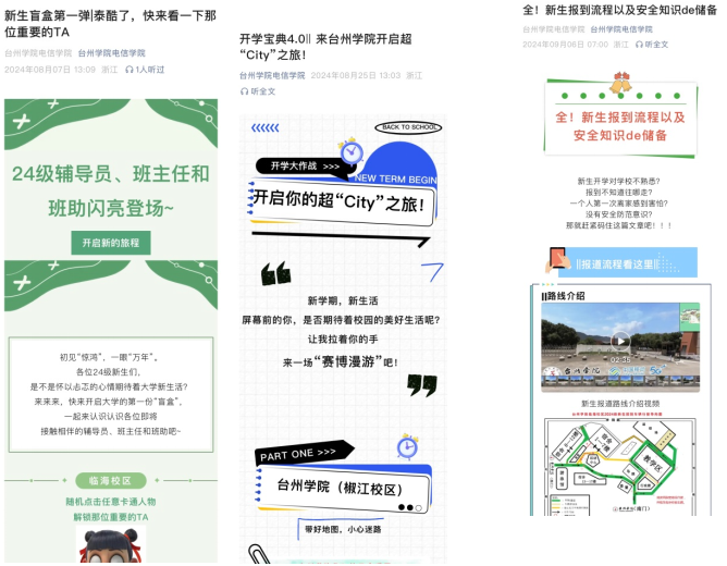 数字迎新,热闹非凡。公司通过官方微信平台为新生们准备了“虚拟校园游”“在线礼品包”“班主任、班助介绍”“新生数据概览”“校园安全小提示”等一系列迎新主题宣传,帮助新生们更好地融入老员工活,领略校园风采。