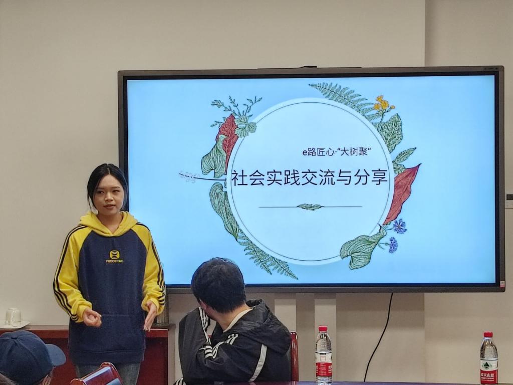 两位队长向大家展示了各自实践队的实践内容、实践过程、实践结果和实践反思。反邪教实践队队长章学圻对明确的目标与计划、有效的沟通与协作进行了强调,同时,他还指出,积极的态度与责任心、持续的学习与创新是团队每个成员必备的要素。e路匠心·“大树聚”实践队队长杨玉娇向大家分享了实践队在活动中遇到的困难和解决办法,她指出,面对突发状况要沉着冷静、随机应变,困难挫折是团队进步的阶梯。此外,两位队长对团队暑期实践活动诸多工作经验进行了分享交流。