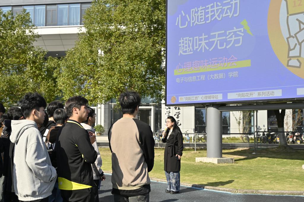 活动伊始,主持人介绍游戏项目,随后董立达副书记讲话,她向大家说明了本次心理趣味运动会旨在为了增进同学们之间的情感交流,释放压力,营造积极向上、团结协作的校园氛围,并宣布心理趣味运动会正式开始。本次心理趣味运动会设置了多个兼具趣味性与挑战性的团队项目,比赛过程中,同学们热情高涨,积极参与,充分发挥自己的智慧和团队协作精神,为了团队的荣誉而努力拼搏。