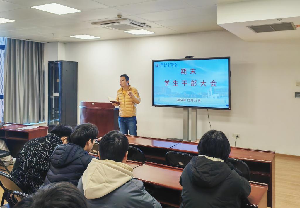 为全面总结本学期员工工作,进一步加强期末安全教育,增强同学们的安全、诚信意识,2024年12月31日中午,太阳集团tcy8722组织召开学工总结会暨期末安全教育大会。辅导员、全体员工干部参加会议,公司党委副书记董立达出席。