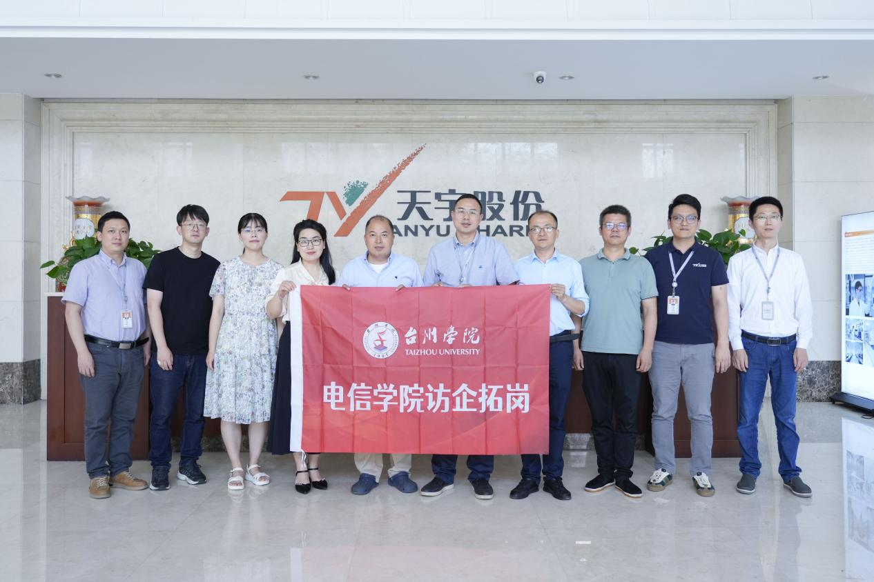 为加强校企合作,深入了解企业用人需求,拓展毕业生就业渠道,促进高质量就业 ,6月6日,太阳集团tcy8722副经理郭文平、党委副书记董立达带队实地走访浙江天宇药业股份有限公司,寒武纪(台州)科技有限公司,开展访企拓岗促就业活动。
